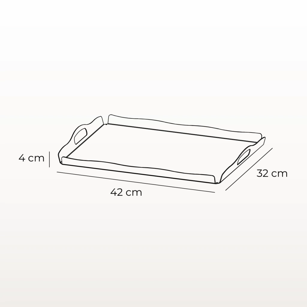Esta bandeja metálica está diseñada para aportar orden y estilo en distintos espacios del hogar u oficina. Su formato práctico y su estética moderna la convierten en una pieza versátil para uso decorativo u organizativo.